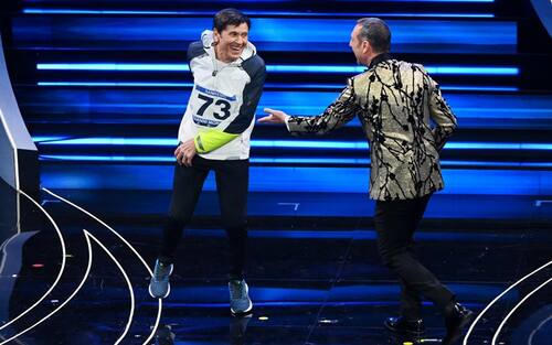 Il cantante bolognese è arrivato sul palco dell'Ariston correndo nella quarta serata del Festival. "Mi hai detto che era una maratona e io ti ho preso sul serio", ha scherzato Morandi rivolgendosi ad Amadeus. E tra il pubblico del teatro sanremese è apparsa una maglia di Ciaramitaro, ex di Trapani, Parma e Palermo
