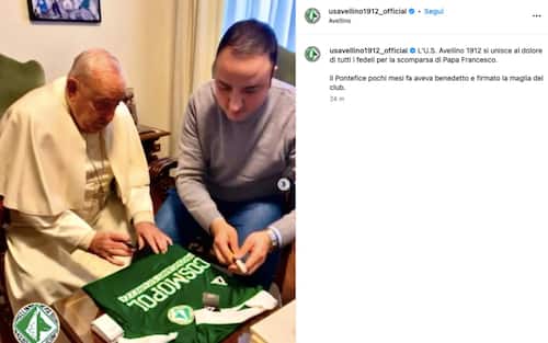 - "L'Avellino si unisce al dolore di tutti i fedeli per la scomparsa di Papa Francesco. Il Pontefice pochi mesi fa aveva benedetto e firmato la maglia del club".