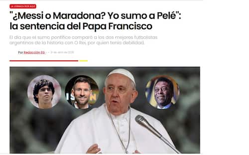 - A proposito di Maradona e Messi, il prestigioso giornale sportivo argentino ricorda quella volta che il Papa, "confrontò i due migliori giocatori della storia del calcio argentino con Pelé", scegliendo quest'ultimo perché incarnava i valori positivi dello sport