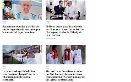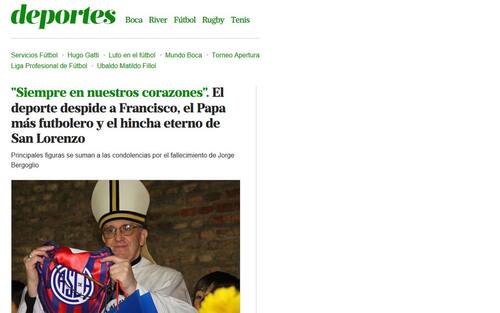 - Partiamo dai giornali argentini. Nel Paese di Papa Francesco ogni testata apre ovviamente con la notizia della sua morte, con parecchi approfondimenti sulla sua figura, sul suo peso nella storia e sul suo rapporto con lo sport