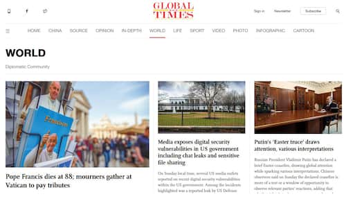 IN CINA SOLO IL GLOBAL TIMES DA' SPAZIO ALLA NOTIZIA