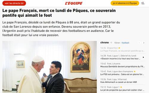 L'EQUIPE (Francia): "IL PAPA CHE AMAVA IL CALCIO"
