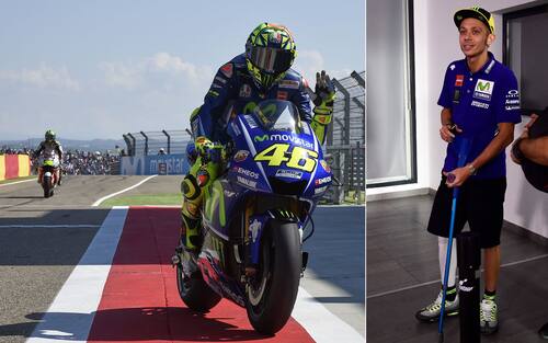VALENTINO ROSSI /2. Ancora lui, stavolta protagonista ad Aragon nel 2017, il 24 settembre. Il 31 agosto, 24 giorni prima, si era fratturato tibia e perone in un incidente in enduro