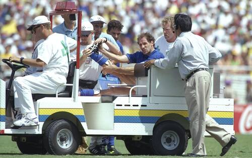 FRANCO BARESI. Al Mondiale di Usa ’94 si infortuna al menisco durante la seconda gara del girone contro la Norvegia, il 23 giugno. Baresi ha già 34 anni e un recupero in tempi brevi sembra un’impresa impossibile, oltre che inutile, dato che l’Italia non pare destinata ad andare molto lontano, in quel Mondiale. E invece… non solo gli Azzurri arrivano in finale, ma quel giorno, in campo contro il Brasile, c’è anche Baresi. È il 17 luglio, sono passati 24 giorni dall’infortunio. Purtroppo per l’Italia, alla fine della partita saranno ancora lacrime per Baresi