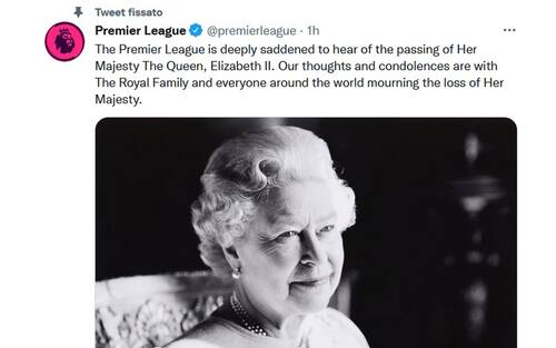 - "La Premier League è profondamente rattristata nell'apprendere della morte di Sua Maestà la Regina Elisabetta II. I nostri pensieri e le nostre condoglianze vanno alla famiglia reale e a tutti coloro nel mondo che sono in lutto per la perdita di Sua Maestà"