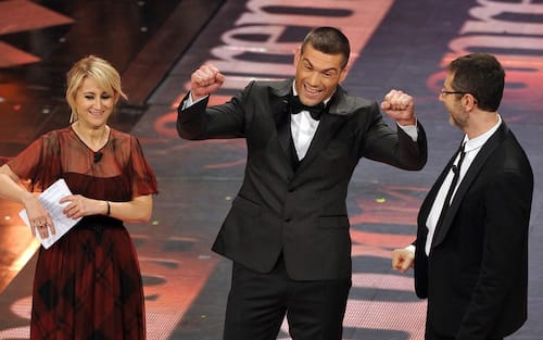 - Il campione dei pesi massimi sfidò le polemiche e venne ospite sul palco dell'Ariston dove rispose alle domande di Paolo Bonolis. Non mancò un divertente duetto sulle note di 'Volare'