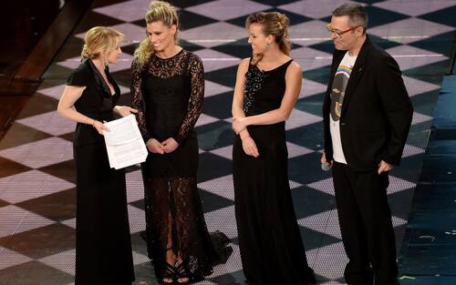 - Solitamente siamo abituati a "vederle" dietro a una maschera, quelle delle fiorettiste della nazionale italiana. Nel 2013, pochi mesi dopo l'oro dell'Olimpiade di Londra, si presero i meritati applausi anche a Sanremo. Manca Valentina Vezzali, costretta a rinunciare dalla par condicio, in quanto candidata per la Lista Monti, all'epoca