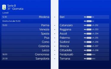 Serie B, la 31^ giornata: tutte le gare su Sky guida tv Torna in campo la Serie B per le gare della trentunesima giornata di campionato. Tutti in campo... 01 apr - 09:30
