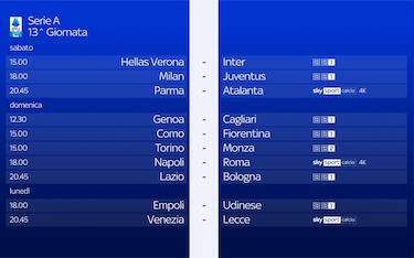 La presentazione della 13^ giornata di Serie A guida tv La 13^ giornata di Serie A si apre sabato 23 e si conclude lunedì 25 novembre. Domenica alle... 21 nov - 15:00