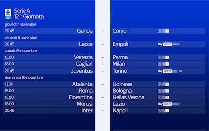 La presentazione della 12^ giornata di Serie A guida tv La 12^ giornata di Serie A inizia giovedì 7 e si conclude domenica 10 novembre. Sabato sera il... 06 nov - 15:00