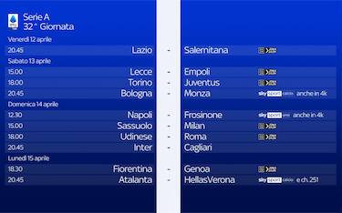 La presentazione della 32^ giornata di Serie A guida tv Le partite della trentaduesima giornata di Serie A: dove vederle, gli arbitri e i giocatori... 11 apr - 15:00