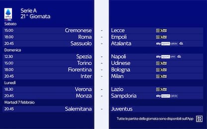 La presentazione della giornata di Serie A guida tv La prima giornata di ritorno del campionato di Serie A si apre venerdì 27 gennaio e si conclude... 26 gen - 15:00