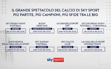 Calcio su Sky: più campioni, più big match stagione '24/'25 E' alle porte la nuova stagione del calcio, con 11 mesi non stop, oltre 1900 partite e più di... 12 ago - 18:00
