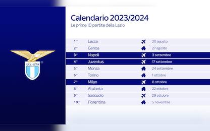 Il calendario della Lazio: subito Napoli e Juve Serie A I biancocelesti di Sarri iniziano il campionato sul campo del Lecce, poi l'impegno interno con il... 05 lug - 13:10