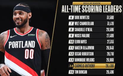 Melo supera Duncan in classifica marcatori. VIDEO RECORD Con una tripla dall’angolo nella facile vittoria di Portland su Golden State, Carmelo Anthony —... 02 gen - 11:48