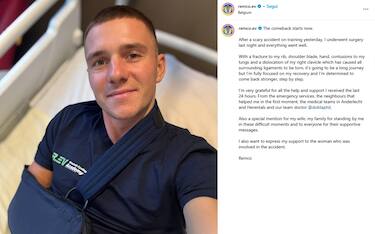 Remco Evenepoel ha pubblicato un post sul suo profilo social in seguito all'incidente di...