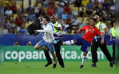 Cile, Jara stende invasore con un calcio. FOTO Calcio Gonzalo Jara dritto sull'uomo, come se stesse fermando un avversario lanciato a rete. È... 25 giu - 18:20 6 foto