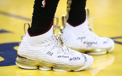 Tutti i messaggi sulle scarpe di LeBron James NBA Pennarello in mano, prima di scendere in campo per gara-1 LeBron James ha iscritto diversi nomi,... 03 giu - 05:51