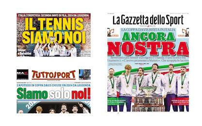 "Ancora nostra": il trionfo in Davis sui giornali Tennis I quotidiani italiani - sportivi e non - celebrano lo storico bis in Coppa Davis dell'Italia di... 25 nov - 08:00 13 foto