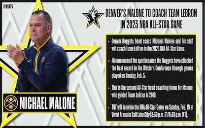 All-Star Game, Michael Malone allenerà Team LeBron NBA Lo staff tecnico dei Denver Nuggets capitanato da Michael Malone raggiunge quello di Joe Mazzulla... 02 feb - 07:28