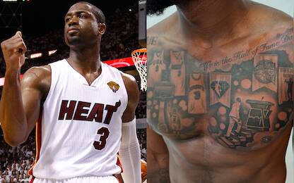 Nuovo tatuaggio per Wade: celebra la sua carriera NBA La leggenda di Miami (tre titoli NBA con la maglia degli Heat, dove ha giocato dal 2003 al 2016 e... 20 mag - 13:32