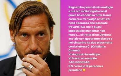Totti perde il Rolex e chiede aiuto ai tifosi Calcio L'ex capitano della Roma ha chiesto aiuto attraverso i social per la ricerca di un preziosissimo... 25 giu - 18:15