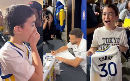 Curry gli firma la maglia, il bambino non ci crede NBA Impegnato nel lancio di una serie di libri per ragazzi, Steph Curry ha trovato il tempo per fare... 04 set - 09:20