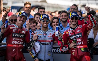 Festa al box Ducati, si scatena "Rocky" Tardozzi MotoGp Bagnaia vince a Silverstone, Miller chiude in terza posizione, e nel box Ducati scatta la festa... 07 ago - 20:09