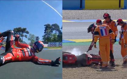 Bagnaia a terra, poi corre a prendere l'estintore la ricostruzione Bagnaia, che a Le Mans partirà 2°, è caduto nel finale delle qualifiche con la sua Ducati che ha... 11 mag - 11:47 28 foto