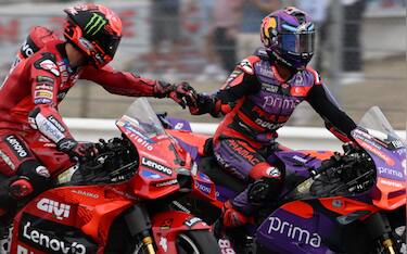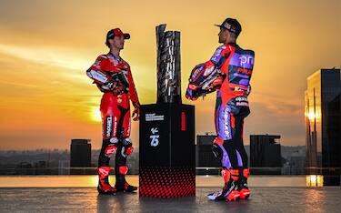 Bagnaia e Martin in posa col trofeo MotoGP. FOTO shooting Dorna l'ha ribattezzato "The Rematch", la rivincita: dopo il 2023 sono ancora Martin e Bagnaia a... 31 ott - 08:23 22 foto