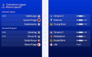 Calendario ritorno playoff Champions League guida tv Tra oggi, martedì 27, e domani, mercoledì 28 agosto, appuntamento con il ritorno dei playoff di... 27 ago - 09:00