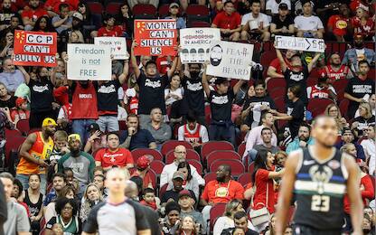 Caso NBA-Cina, proteste pro Hong Kong a Houston NBA Nella gara d'esordio stagionale dei Rockets, diversi tifosi hanno esposto cartelli e magliette in... 25 ott - 10:34