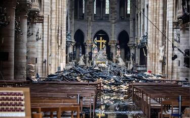 Il giorno dopo l'incendio che ha devastato Notre-Dame, i pompieri sono riusciti a domare le...