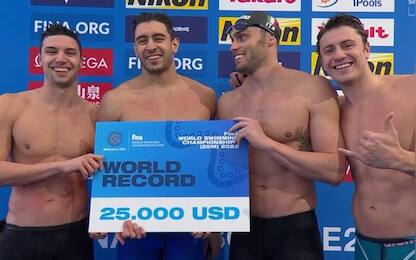 Show della 4x50 mista: oro e record del mondo mondiali nuoto Oro con record del mondo per il quartetto Mora, Martinenghi, Rivolta e Deplano, prima staffetta... 17 dic - 09:51