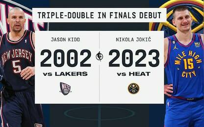 Numeri da record per Jokic al debutto alle Finals NBA Nikola Jokic ha dominato gara-1 delle finali NBA contro Miami, mettendo a referto la nona tripla... 02 giu - 09:01 12 foto