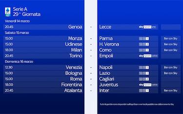 Il calendario della 29^ giornata di Serie A guida tv Da venerdì 14 a domenica 16 marzo su Sky e in streaming su NOW la 29^ giornata di Serie A con 3... 14 mar - 09:00