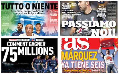 "Tutto o niente", Marquez leggenda: rassegna Calcio Prime pagine dei giornali italiani dedicate tutte allo spareggio tra gli Azzurri e gli svedesi.... 13 nov - 11:16