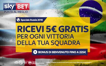 Promo Mondiale Sky Bet: 5 Euro per ogni vittoria della tua squadra Consigli e pronostici sulle scommesse sportive La mancata qualificazione dell’Italia ti ha spiazzato? Niente paura, con la promo antepost di Sky... 07 giu - 13:28