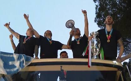 Bonucci e Immobile lanciano i cori dei tifosi festa azzurra Ad attendere fuori dall'hotel il pullman scoperto che ha portato la Nazionale in festa per le... 12 lug - 21:15