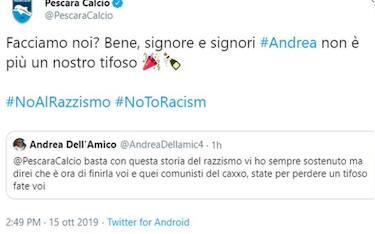 Razzismo, Pescara contro un suo tifoso su Twitter Serie B Forte presa di posizione della società abruzzese sul suo profilo social contro un utente che... 15 ott - 17:06