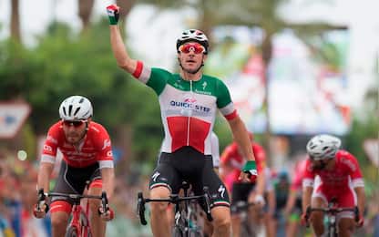Il velocista azzurro batte Peter Sagan allo sprint (il campione del mondo chiude terzo), con...
