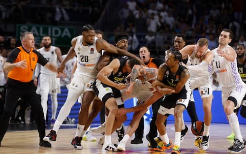 - Alla fine gli arbitri hanno espulso tutti i 24 giocatori in campo dichiarando conclusa la partita per mancanza del numero minimo di giocatori in campo. L’Eurolega ha condannato fermamente quando successo: “Eventi che non rappresentano i valori di rispetto che la lega e i suoi club promuovono e che lo sport del basket incarna”. Ha presentato una denuncia a un Giudice Disciplinare Indipendente che deciderà entro 24 ore le sanzioni a carico dei protagonisti della rissa
