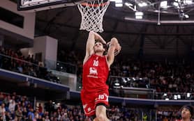 Nel grande primo tempo dell’Efes a Milano spiccano le clamorose doti atletiche di Kai Jones. Il lungo ex NBA ha dato sfoggio delle sue doti di salto realizzando due schiacciate a rimbalzo offensivo a distanza di pochi minuti, volando sulla testa dei giocatori dell’Olimpia per chiudere con la testa al ferro