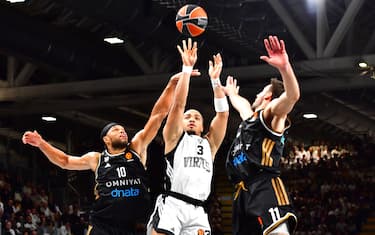 - Sesta vittoria su sei in casa per la Virtus Bologna, imbattibile in Eurolega davanti al proprio pubblico. Dopo le prime cinque vittorie conquistate al PalaDozza, anche alla Virtus Arena i campioni d’Italia difendono il fattore campo, anche se serve un finale da campione di Luca Vildoza per riuscirci. Il playmaker argentino, uscito brevemente nel primo tempo per una distorsione alla caviglia, è glaciale nel finale realizzando la tripla del sorpasso a 27 secondi dalla fine e poi il recupero dalle mani di Petrusev sul possesso difensivo finale, suggellando così il successo di Bologna.