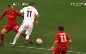 LAZIO-ROMA 1-2. Qualche dubbio sul rigore assegnato alla Lazio poi sbagliato da Floccari: Cassetti allunga la gamba su Kolarov per poi riportarla in posizione, ma il serbo cade in area e l'arbitro fischia il penalty