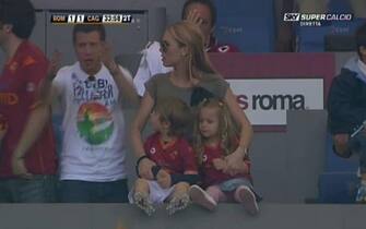 Ilary Blasi si presenta all'Olimpico con la maglia numero 10 del marito