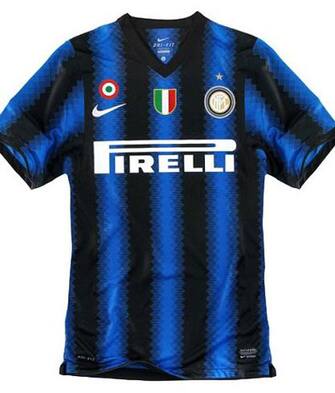 L'Inter si affida a un effetto grafico: le strisce segmentate dovrebbero dare un senso di tridimensionalità.