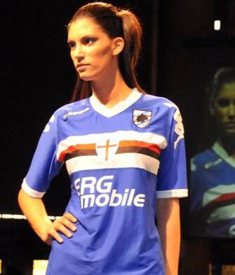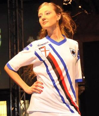Classica la prima maglia blucerchiata. Cambia la seconda, bianca con banda trasversale.