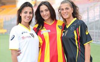 Tre bellezze salentine presentano le nuove maglie del Lecce per la stagione del ritorno in serie A