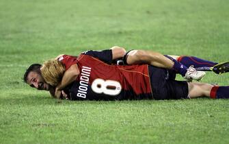 Due assist per Andrea Cossu. Uno per Davide Biondini. Tre dei cinque gol del Cagliari sono anche merito loro. Un abbraccio ci sta (foto Getty)
